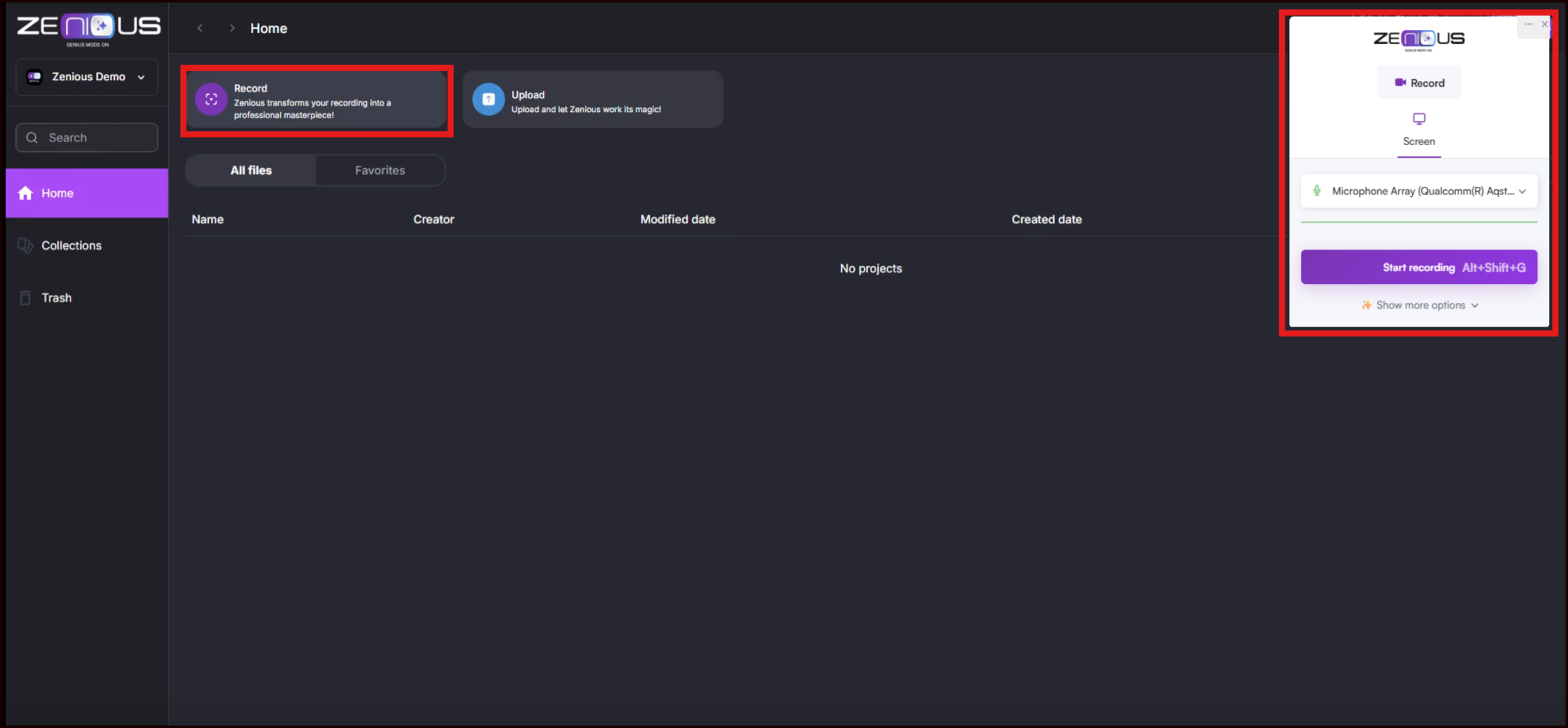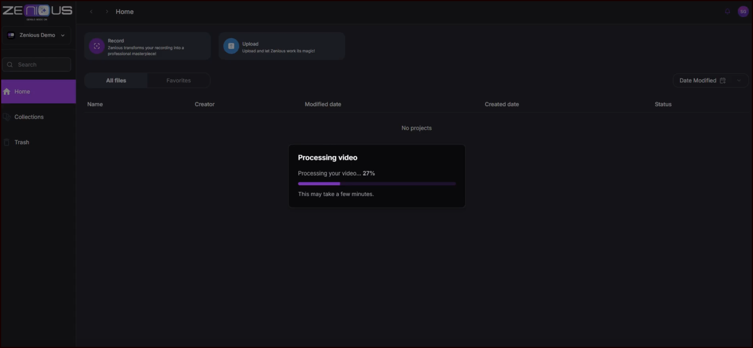 Zenious is an AI-powered platform that transforms simple screen recordings into professional-quality videos. This procedure guides you through the initial steps of using Zenious, from recording or uploading your video to editing, customizing, and exporting your final video.