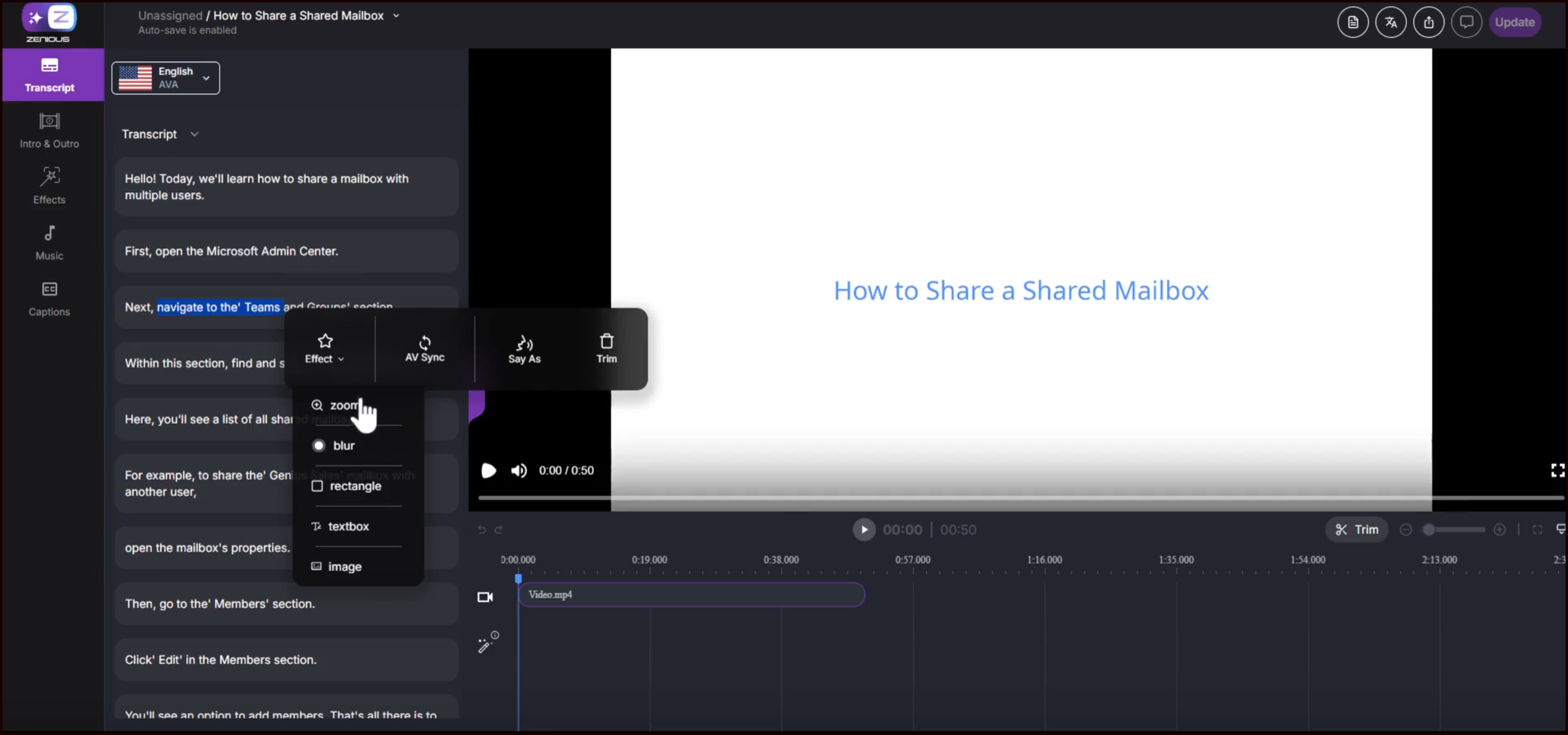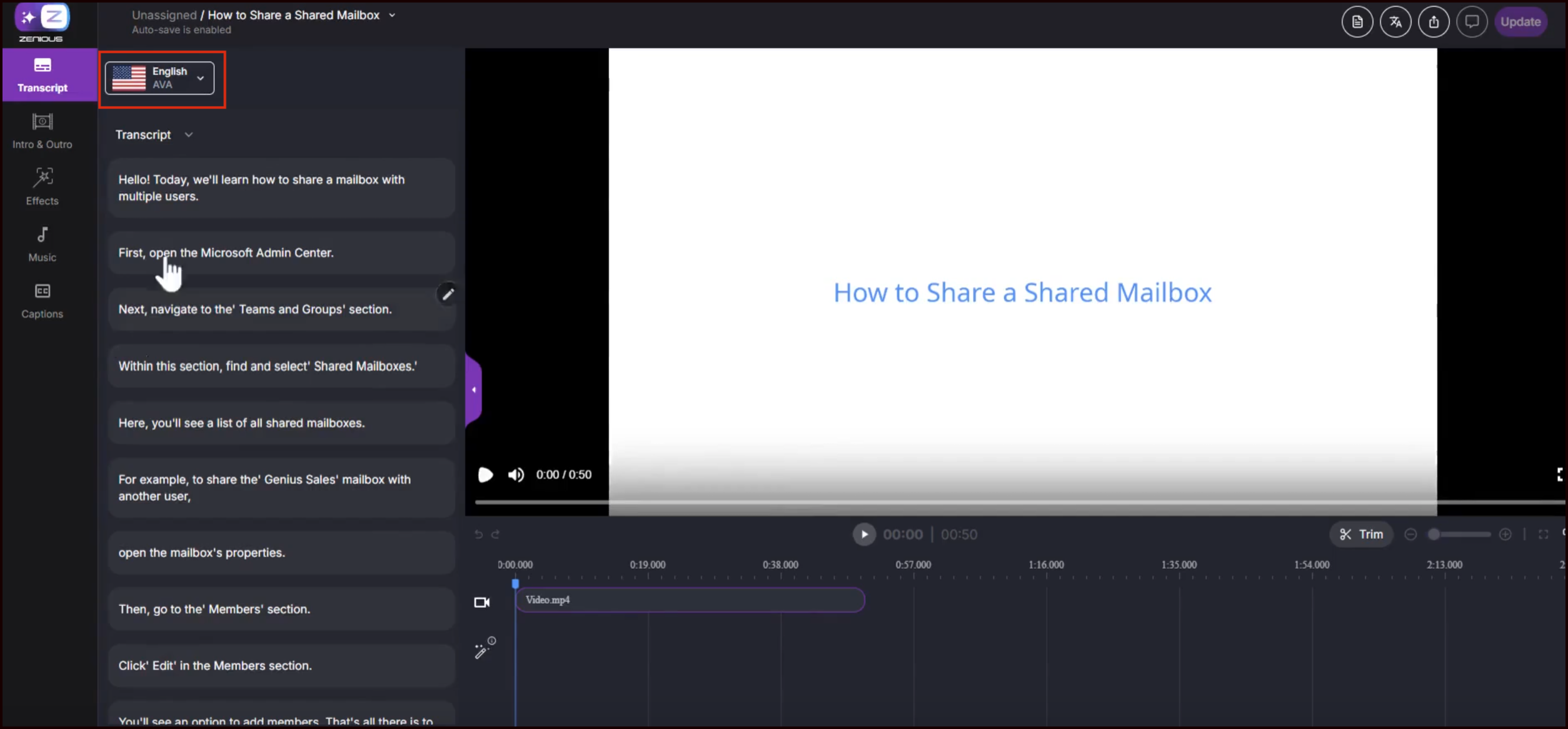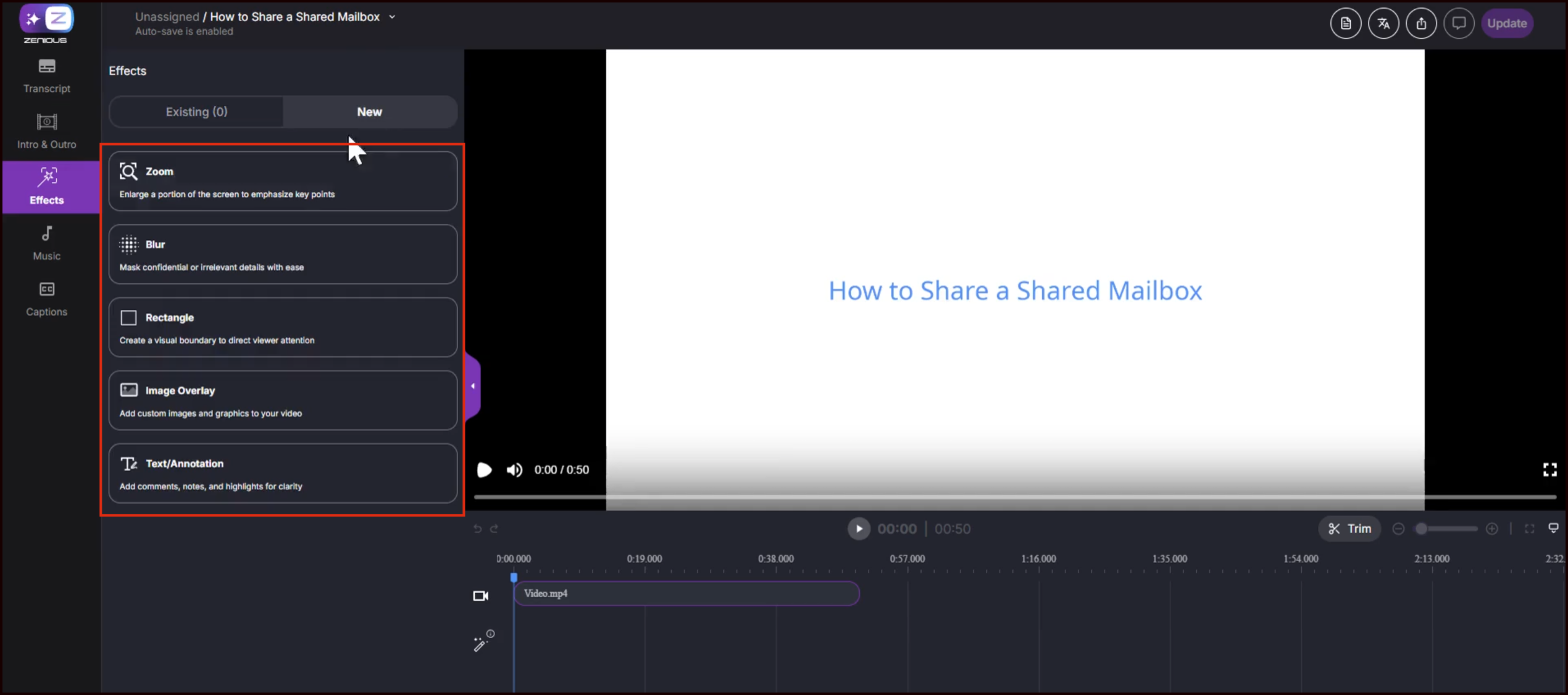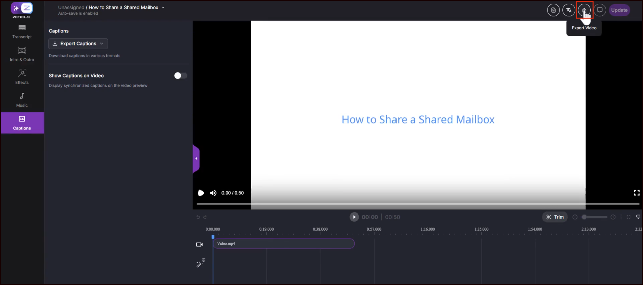 Open your video in the Zenious editor.