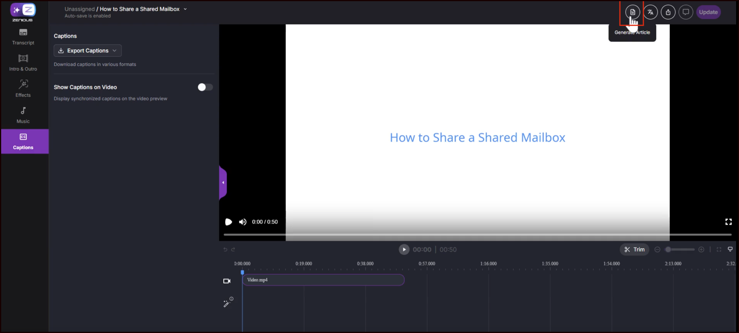 (Optional) Click Generate Article to create a document from your video.