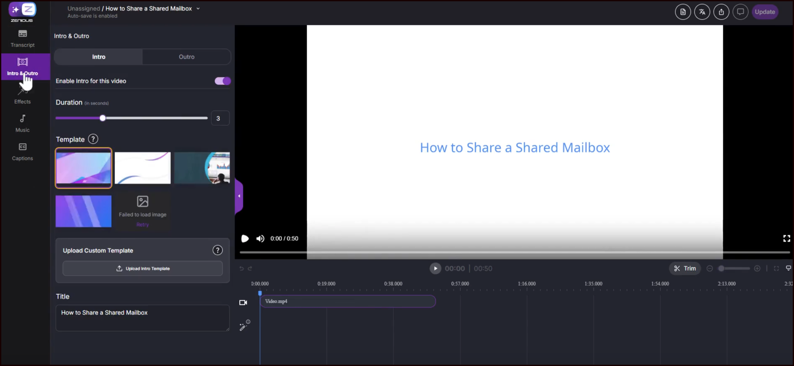 Use the Intro & Outro tab to update the intro or outro for your video.