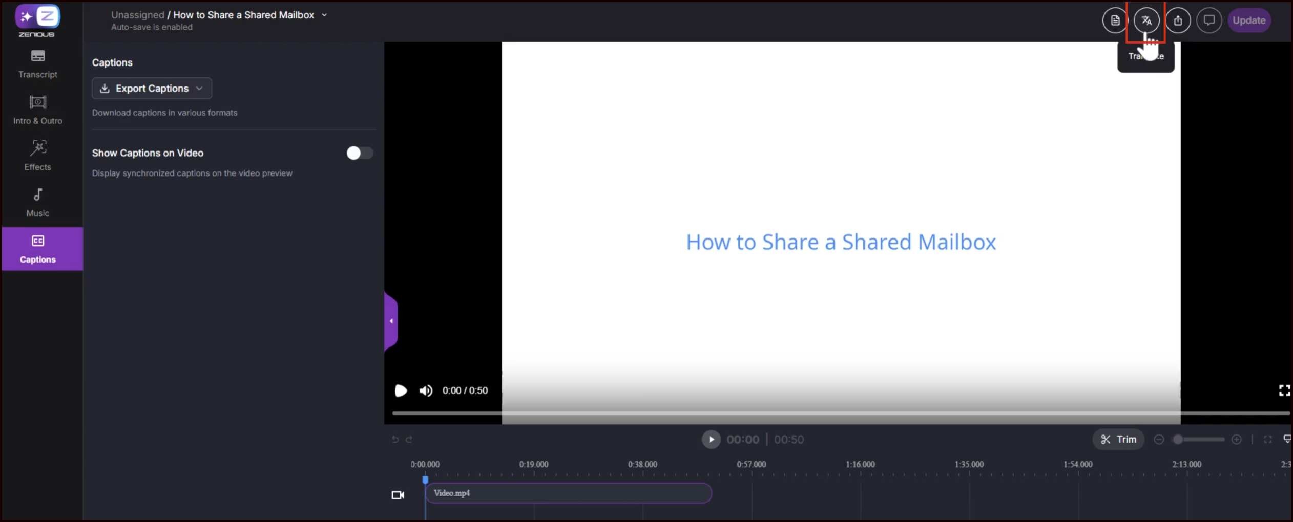 (Optional) Click the Translate option to translate your video.