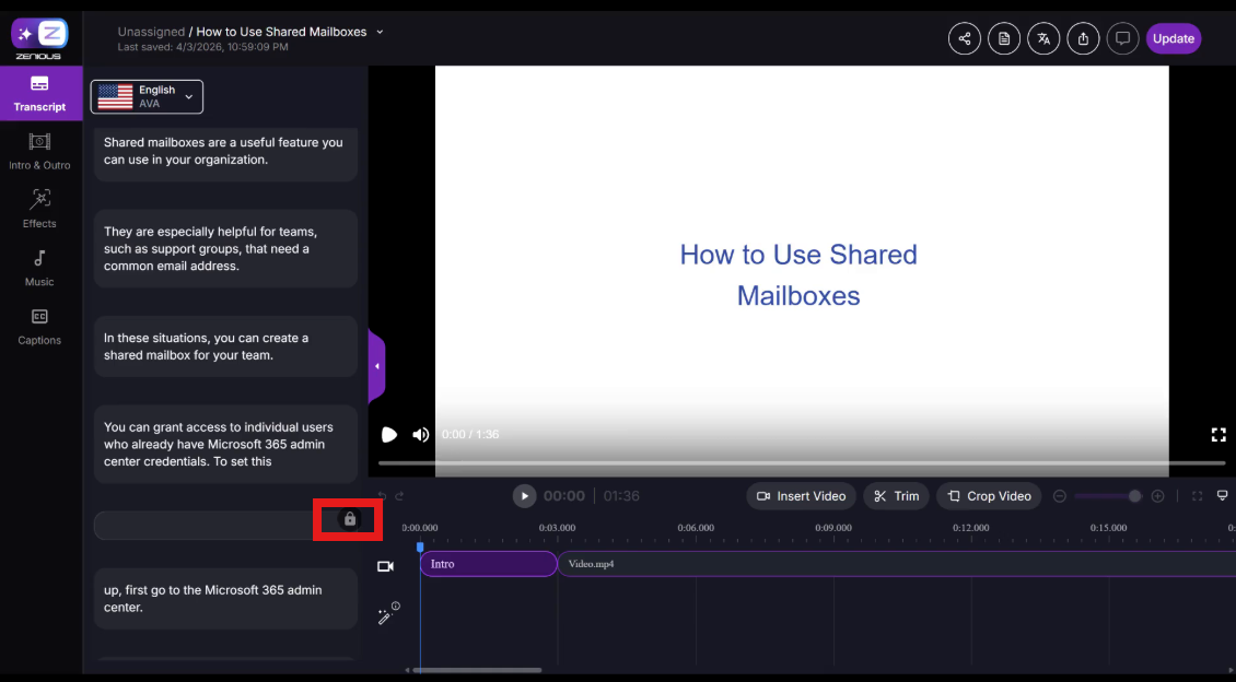 - Process with Zenious: Zenious will transcribe the video's narration, rewrite it, generate an AI voice, sync, and insert it.