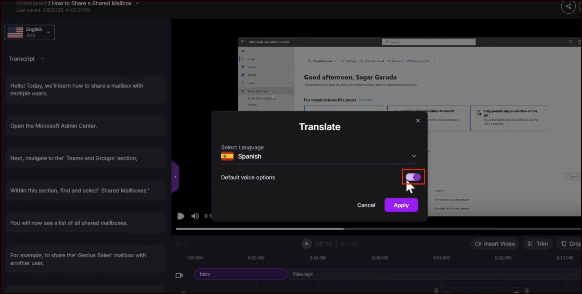 Translating your video with Zenious allows you to reach a wider audience by converting your content into different languages. After recording your video in English and allowing Zenious to process it, you can easily translate it into your preferred language. This process includes selecting a language, choosing a voice, and reviewing the translated result.