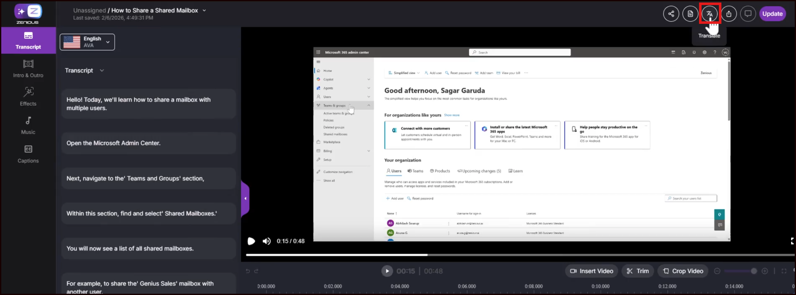 Editing and refining your video transcript in Zenious ensures your narration is accurate, clear, and tailored to your needs. Zenious automatically transcribes your narration and polishes it for a professional result, but you can easily make further ...